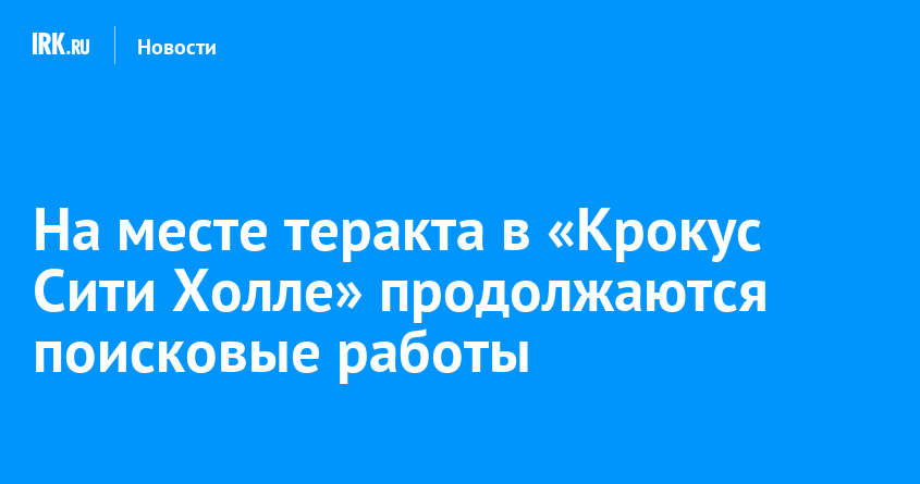 Поисковая операция продолжается на месте теракта в «Крокус Сити Холле» в подмосковном Красногорске. Спасательная операция на месте трагедии завершена, написал в своем телеграм-канале губернатор Московской области Андрей Воробьев.