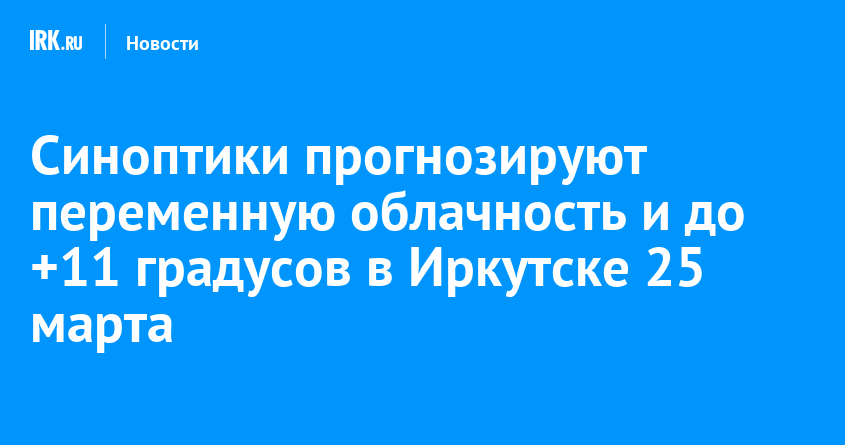 В Иркутске 25 марта ожидается переменная облачность, без существенных осадков. Ветер 4-9 метров в секунду, температура +9… +11 градусов, сообщает Иркутский гидрометцентр.