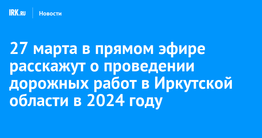 27 марта в прямом эфире выступит министр транспорта и дорожного хозяйства Иркутской области Максим Лобанов. Он расскажет о планах проведения дорожных работ в регионе в 2024 году и выполнении гарантийных обязательств по готовым объектам.