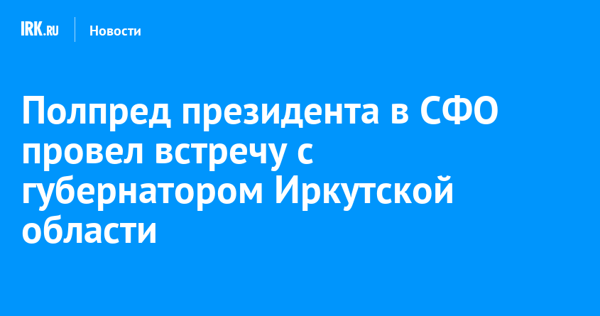 Полномочный представитель президента РФ в Сибирском федеральном округе Анатолий Серышев провел встречу с губернатором Иркутской области Игорем Кобзевым. Он обозначил значимость вопросов исполнения указов и поручений главы государства, достижения целей национальных проектов, сообщает пресс-служба правительства региона.