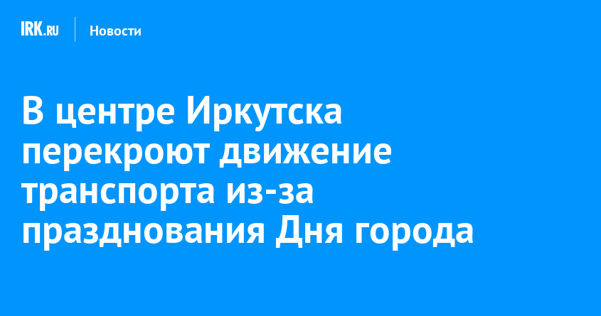 В центре Иркутска 1 июня перекроют движение транспорта из-за проведения мероприятий, посвященных празднованию Дня города. Об этом сообщили в пресс-службе администрации города.