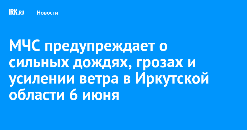 ГУ МЧС России по Иркутской области предупреждает об ухудшении погоды в регионе 6 июня. По данным гидрометцентра, местами по области ожидаются заморозки до -3 градусов, грозы, в северо-восточных районах сильные и очень сильные дожди, в горах с мокрым снегом. Ночью и утром в северных районах порывы северо-западного ветра 15-18 метров в секунду.