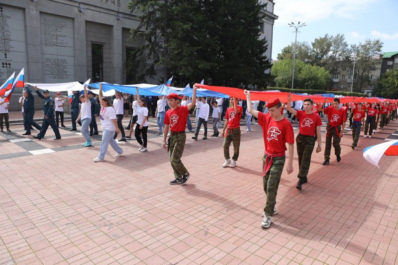 В День России в нескольких городах страны активисты развернули на центральных площадях масштабные российские флаги. К этой акции присоединились жители Владивостока, Чебоксар, Новгорода, Анадыря, Воронежа, Перми, Самары, Иркутска.