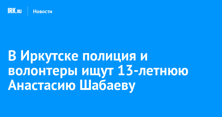 Сотрудники полиции и волонтеры ищут 13-летнюю иркутянку Анастасию Шабаеву. Вечером 10 июня девочка ушла из дома и не вернулась. Она может находиться в любом районе Иркутска и пригорода.