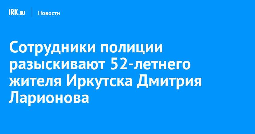 Полицейские разыскивают без вести пропавшего 52-летнего Дмитрия Ларионова. С заявлением о розыске мужчины обратилась его супруга. Женщина рассказала, что вечером 13 июня иркутянин ушел из дома в микрорайоне Юбилейный и не вернулся, сообщает пресс-служба ГУ МВД России по Иркутской области.