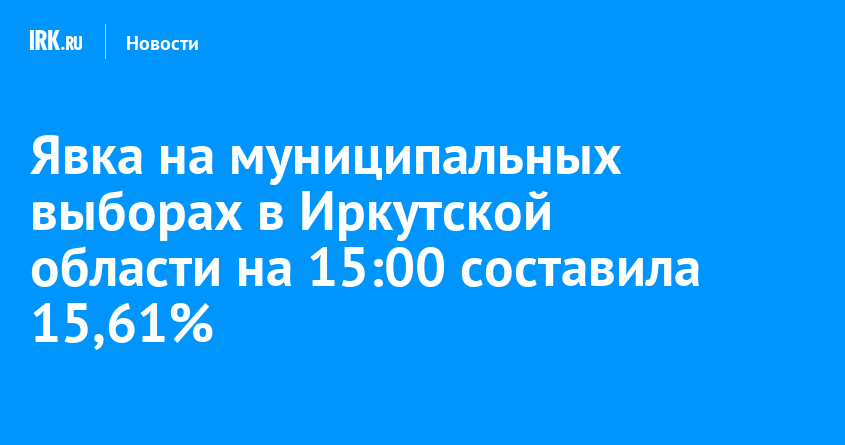 Явка на муниципальных выборах в Иркутской области на 15:00 составила 15,61%, данные огласил председатель Избирательной комиссии региона Илья Дмитриев. Проголосовали 216 879 человек (включая тех, кто голосовал досрочно).