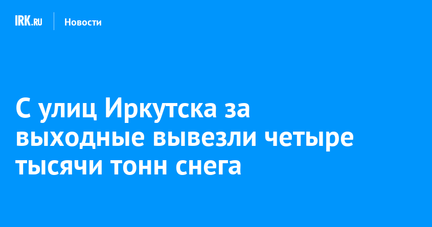 За выходные с улиц Иркутска вывезли четыре тысячи тонн снега. Утром 13 января на дороги вышли порядка 150 человек и 80 единиц техники. Вручную в порядок привели тротуары на Мира, 4-й Железнодорожной, Сухэ-Батора, Марата, Декабрьских Событий, Свердлова. Механизированным способом очистили улицы Баумана, Ярославского, Норильская, Костычева, Терешковой, Лермонтова, Пушкина, Старо-Кузьмихинская, а также переулки Деповский, Восточный, сообщили в пресс-службе администрации Иркутска.