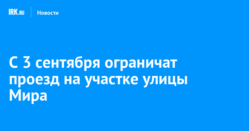В Иркутске с 3 сентября ограничат движение автомобилей по улице Мира. Проехать нельзя будет по участку от Маршала Говорова до Панфилова.