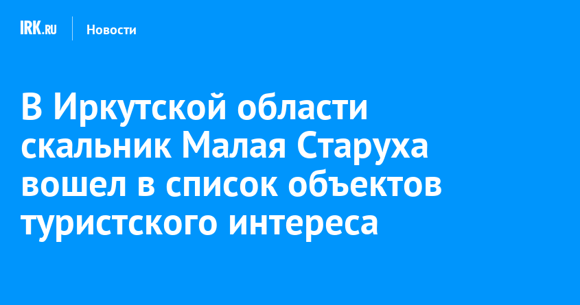Расположенный на территории Шелеховского района скальник Малая Старуха пополнил перечень объектов туристского интереса в Приангарье. Также в банк Земли для туризма вошли три участка, которые находятся поблизости от природного объекта, сообщает пресс-служба Управления Росреестра по Иркутской области.