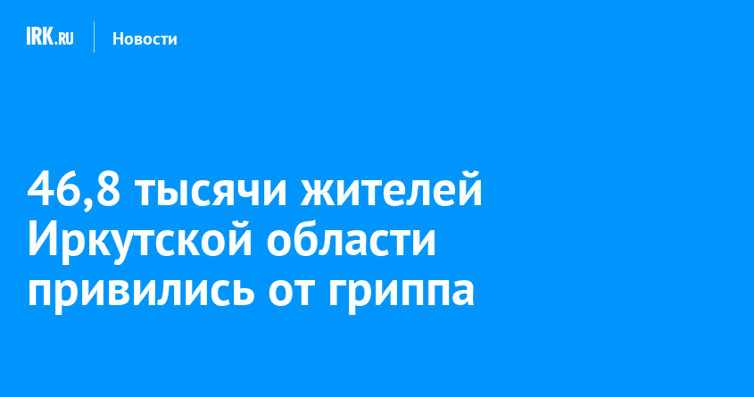 В Иркутской области в конце августа началась вакцинация населения от гриппа. За это время прививки поставили 46,8 тысячи человек, в том числе 12,3 тысячи детей, сообщает пресс-служба правительства региона. Охватить вакцинацией планируют 60% жителей.