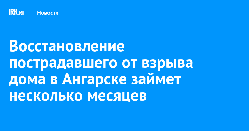 Восстановление жилого дома, пострадавшего от взрыва в Ангарске, займет несколько месяцев. Работы проведут за счет средств Фонда капитального ремонта Иркутской области, сообщил в телеграм-канале мэр АГО Сергей Петров. Больше всего повреждений получил четвертый подъезд.