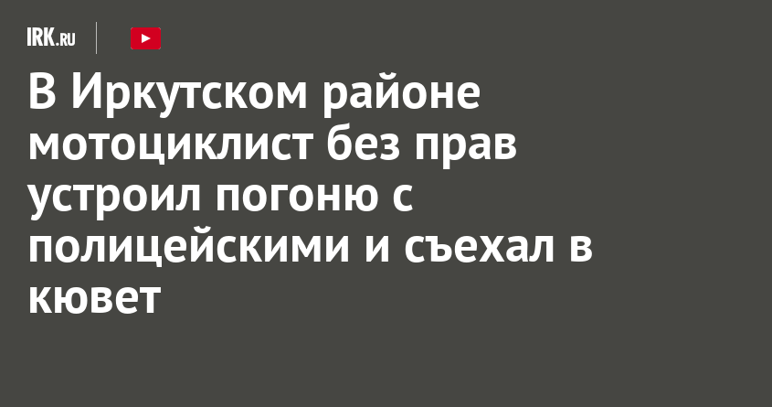 Вечером во время дежурства на автодороге «Иркутск — Оса — Усть-Уда» экипаж ДПС обратил внимание на мотоцикл Racer без номеров. Полицейские подали водителю сигнал об остановке транспортного средства, но тот проигнорировал требование, увеличил скорость и попытался скрыться. Инспекторы начали преследовать нарушителя.