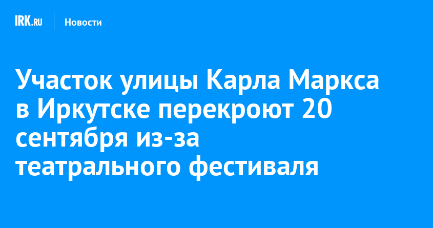 20 сентября на участке улицы Карла Маркса в Иркутске на три часа перекроют движение транспорта. Это связано с проведением 15 международного театрального фестиваля современной драматургии имени Александра Вампилова.