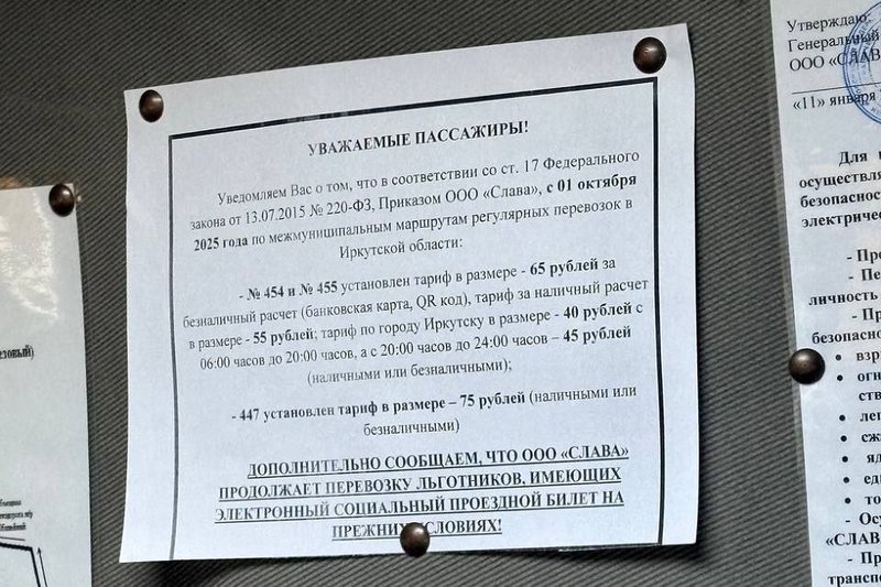 С 1 октября 2025 года цена билета на маршрутах поднимется до 65 рублей. Как прокомментировали журналисту IRK.ru пассажиры, стоимость повысили сразу на 20 рублей. По словам местных жителей, перевозчик аргументирует увеличение цены проезда открытием нового маршрута, который будет проходить до центрального рынка через плотину ГЭС.