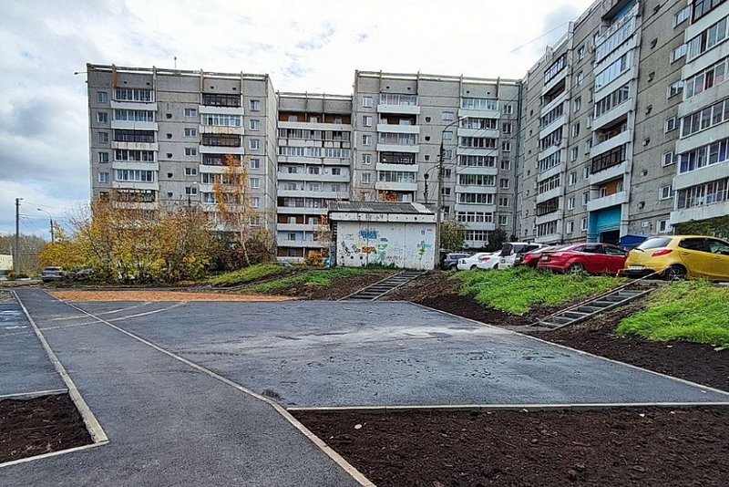 В районе здания на бульваре Рябикова, 34а оборудовали тротуар с лестницей. У дома №31в разделили потоки людей и машин у контейнерной площадки, создав отдельную пешеходную территорию.