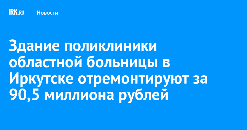 В Иркутске ищут подрядчика, который проведет капитальный ремонт здания консультативно-диагностической поликлиники Иркутской ордена «Знак Почета» областной клинической больницы. Учреждение находится в микрорайоне Юбилейном. Цена контракта составляет 90,5 миллиона рублей, сообщается в документации на сайте единой информационной системы в сфере закупок.