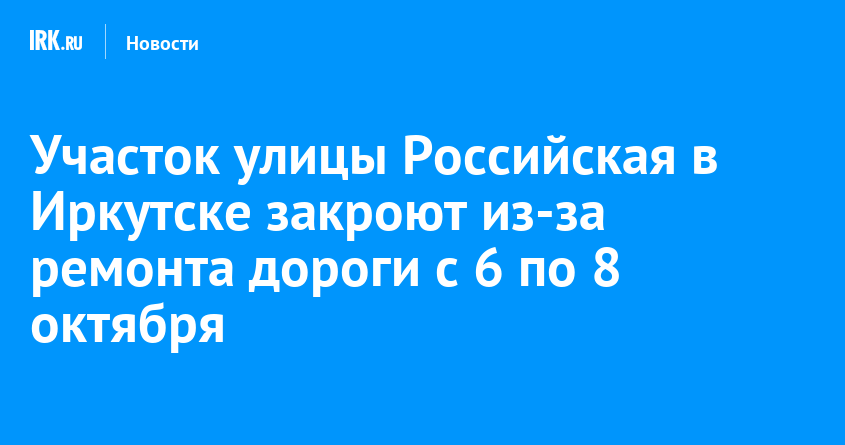 С 20:00 6 октября до 08:00 8 октября будет полностью перекрыто движение транспорта на участке улицы Российской между улицами Ленина и Степана Разина. Ограничение связано с проведением дорожных работ в рамках национального проекта «Инфраструктура для жизни», сообщили в пресс-службе администрации Иркутска.