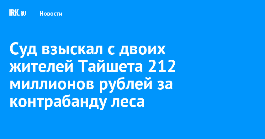 Тайшетский городской суд рассмотрел исковые требования транспортного прокурора о взыскании в пользу государства доходов, полученных от незаконного экспорта лесоматериалов за границу. Ущерб причинили двое мужчин, ранее их признали виновными в контрабанде 44 тысяч кубометров леса хвойных и лиственных пород. Суд взыскал с виновных свыше 212 миллионов рублей, сообщает Генпрокуратура России.