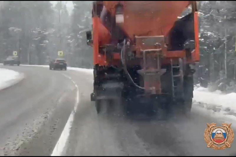 Снег на федеральной трассе. Скриншот видео пресс-службы Госавтоинспекции Иркутской области