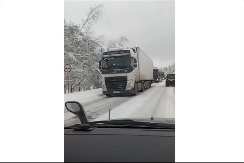 Пробка на федеральной трассе. Скриншот видео Светланы Палеевой