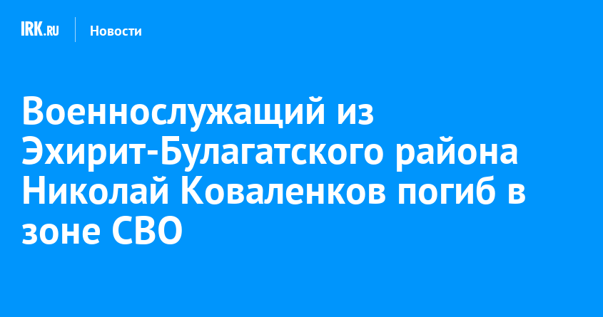 Уроженец села Харат Эхирит-Булагатского района Николай Коваленков погиб в зоне проведения СВО. Мужчине было 28 лет. Об этом в своих соцсетях сообщил мэр района Геннадий Осодоев.