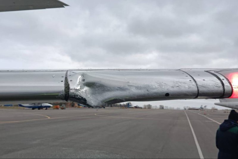 Самолет задел автобус концом крыла, когда выруливал со стоянки. В результате случившегося никто не пострадал. Оба транспортных средства получили повреждения. Рейс отменили.