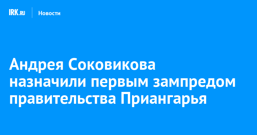 На должность первого заместителя председателя правительства Иркутской области назначили Андрея Соковикова. Его кандидатуру предложил губернатор Игорь Кобзев.