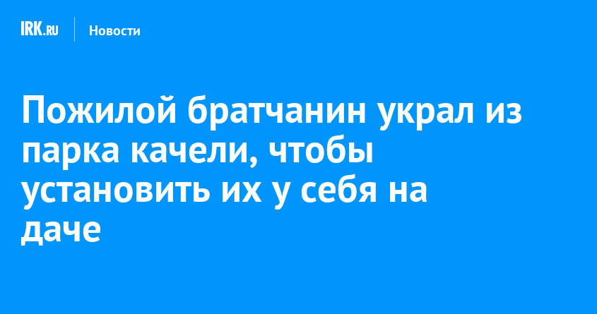 Сотрудник бюджетного учреждения Братска заявил в полицию о пропаже качелей из парковой зоны в третьем микрорайоне центральной части города. Мужчина рассказал, что ночью неизвестный спилил конструкцию на улице Обручева и увез ее, сообщает пресс-служба ГУ МВД России по Иркутской области.