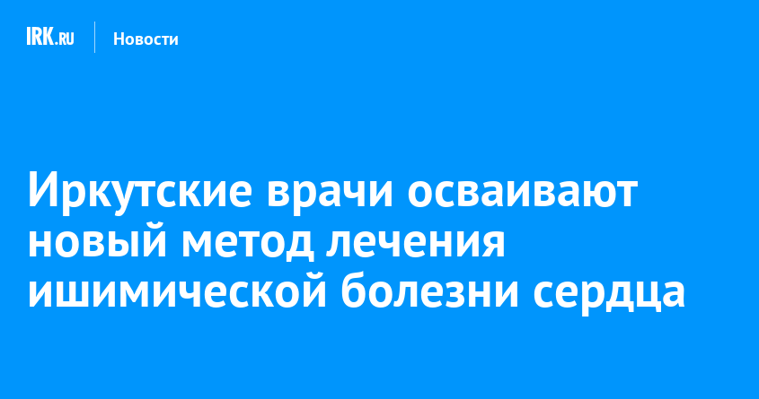 Иркутские врачи начали внедрять в работу инновационный метод лечения ишемической болезни сердца. С помощью него стало возможным восстановить нормальное кровоснабжение сердечной мышцы менее травматичным способом, сообщает пресс-служба правительства региона.