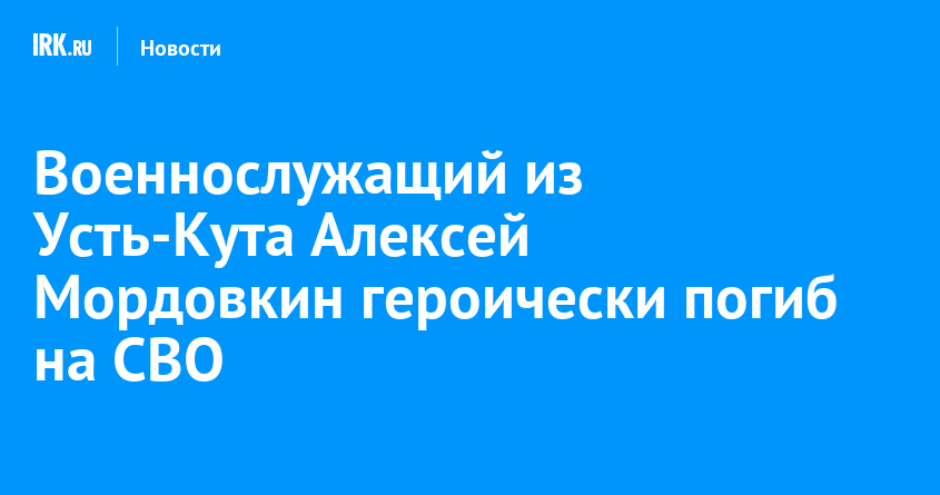 Военнослужащий из Усть-Кута Алексей Мордовкин героически погиб в ходе проведения специальной военной операции. Бойцу было 35 лет, сообщила городская администрация в соцсетях.