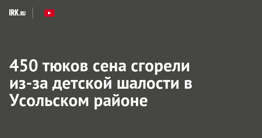 В Усольском районе полицейские установили предполагаемых виновников возгорания 450 тюков сена. Ими оказались мальчики 9 и 12 лет, сообщили в пресс-службе ГУ МВД России по Иркутской области.