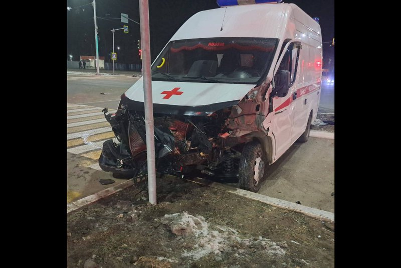 В аварии пострадали водитель и пассажир иномарки, их госпитализировали. В момент аварии в служебном автомобиле находился только водитель. Медики также оказали ему разовую помощь.