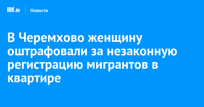 Черемховский городской суд вынес обвинительный приговор 43-летней местной жительнице. Ее признали виновной по статье 322.3 УК РФ «Фиктивная постановка на учет иностранного гражданина по месту пребывания в РФ». Об этом сообщили в пресс-службы прокуратуры Иркутской области.