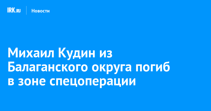 Уроженец Иркутской области Михаил Кудин погиб при выполнении боевого задания вблизи населенного пункта Загрызово в зоне проведения СВО. Мужчине было 37 лет, сообщается в соцсетях администрации Балаганского муниципального округа.