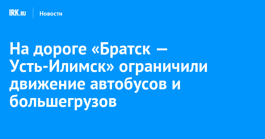 Госавтоинспекция Иркутской области сообщает о временном прекращении движения автобусов и большегрузных автомобилей на региональной дороге «Братск — Усть-Илимск». Ограничение ввели на участке с 246-го по 70-й километр.