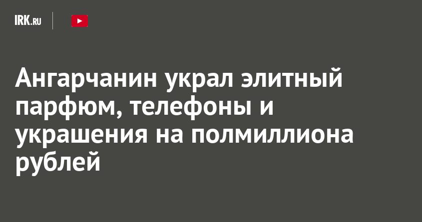 В Ангарске 28-летний мужчина подозревается в краже элитного парфюма, ювелирных украшений и мобильных телефонов на общую сумму 500 тысяч рублей. При этом похищенное он сбыл за 50 тысяч рублей. Вырученными деньгами предполагаемый злоумышленник оплатил алкоголь и развлечения, сообщает пресс-служба ГУ МВД России по Иркутской области.