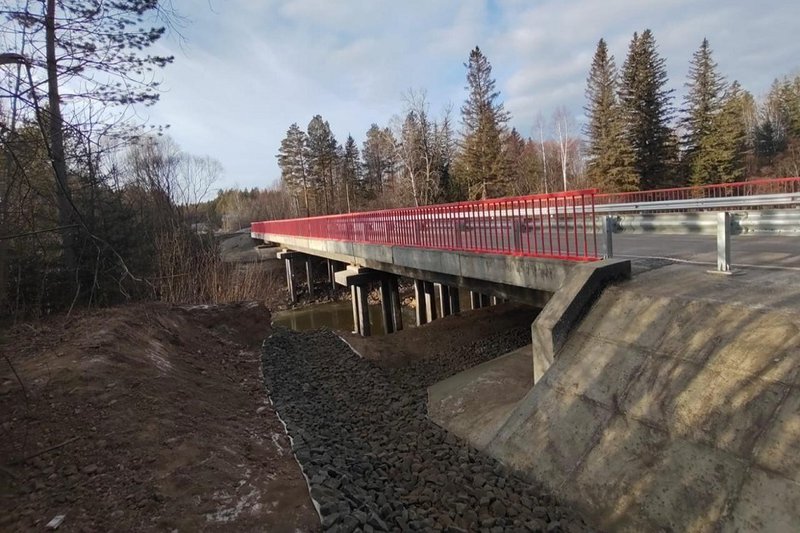 Длина отремонтированного моста составляет 39,7 метра. В ходе работ специалисты восстановили четыре опоры, заменили балки пролетного строения и обновили бетонные поверхности. На объекте полностью заменили мостовое полотно: уложили выравнивающий слой, сделали гидроизоляцию и асфальтобетонное покрытие. Для обеспечения безопасности движения установили новые металлические ограждения.