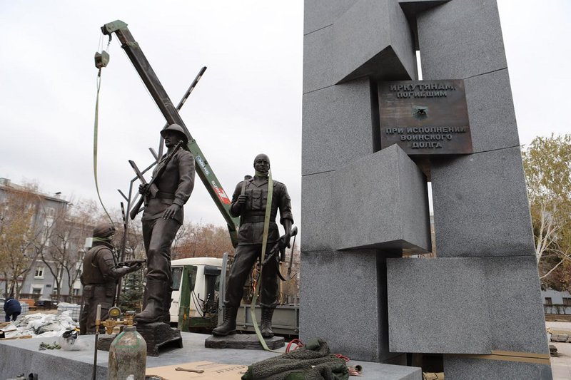Подрядчик устанавливает на площади Декабристов мемориал «Дед, отец и сын», посвященный героям-защитникам Отечества. Композиция состоит из трех фигур, которые символизируют преемственность воинской доблести. Монумент доставили в Иркутск ночью 28 октября, сообщает пресс-служба администрации города.