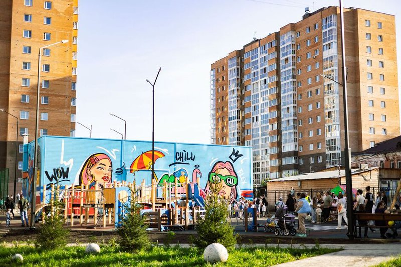 В компании-застройщике говорят, что сотрудничество с молодыми художниками, которое началось на этом проекте, станет постоянной практикой, как и дворовые праздники для жителей. На финальный турнир по дартсу, которым «Регион Сибири» отметил завершение работ по реконструкции ТНС, собралось порядка 200 человек.