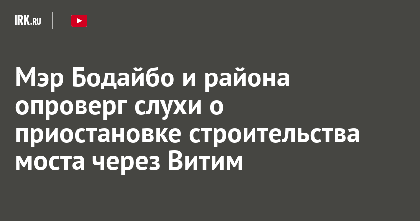 В соцсетях и мессенджерах начала распространяться информация о приостановке строительства моста через реку Витим. Мэр Бодайбо и района Евгений Юмашев опроверг эти слухи и заявил, что работы продолжаются в плановом режиме, сообщается в соцсетях администрации муниципалитета.