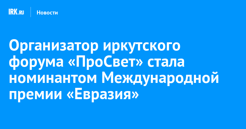 Заместитель руководителя молодежного отдела Иркутской епархии, организатор форума православной молодежи «ПроСвет» Евгения Ким вошла в число номинантов Международной премии «Евразия». Она заняла первое место в номинации «Мосты дружбы». Церемония вручения наград состоялось в национальном центре «Россия», сообщает пресс-служба правительства Иркутской области.