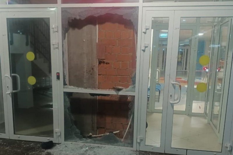 Разбитое стекло в тамбуре. Фото пресс-службы Росгвардии