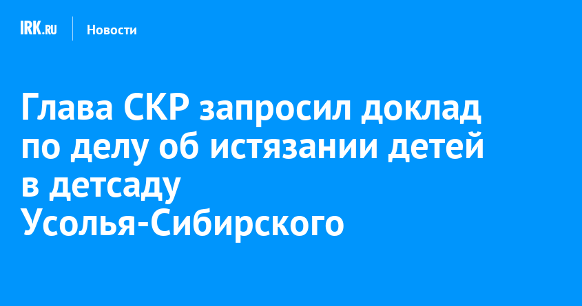 Председателю СКР Александру Бастрыкину доложат о ходе расследования уголовного дела по факту истязания воспитанников детского сада в Усолье-Сибирском. Доклад представит руководитель следственного управления по Иркутской области Анатолий Ситников, сообщается в информационном центре Следкома России.