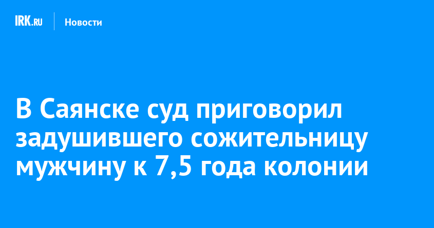 В Саянске суд вынес приговор 28-летнему местному жителю. Мужчину признали виновным в убийстве сожительницы. Инцидент произошел 2 июля 2025 года, сообщили в пресс-службе СУ СКР по Иркутской области.