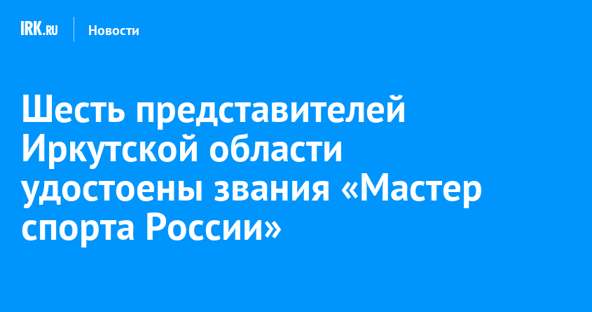 Министерство спорта РФ присвоило почетное звание «Мастер спорта России» шести спортсменам из Иркутской области, специализирующимся в боксе, плавании, подводном спорте, спортивной аэробике и вольной борьбе. Соответствующий приказ подписал глава Минспорта Михаил Дегтярев.