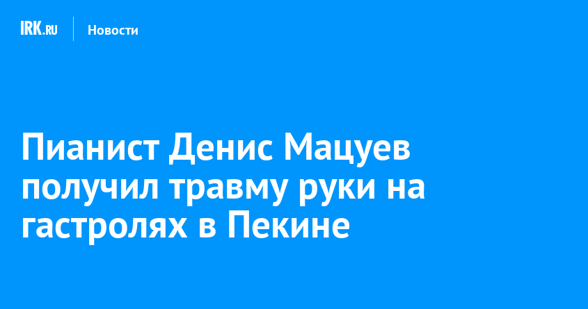 Пианисту Денису Мацуеву прищемило руку дверью машины во время гастролей в Пекине. Ему потребовалась помощь медиков. Несмотря на болезненную травму и первоначальные опасения, обследование показало, что серьезных повреждений нет.