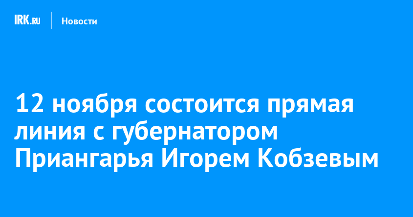 В 18:30 12 ноября 2025 года стартует прямая линия с губернатором Иркутской области Игорем Кобзевым. Трансляция пройдет на телеканале «Россия 24».