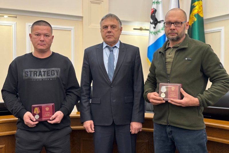 Мэр Ангарского городского округа Сергей Петров передал государственные награды двум военнослужащим — участникам спецоперации. Петр З. удостоен медали «За отвагу», а Иван Б. медали «За храбрость» второй степени.
