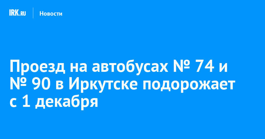 Коммерческие перевозчики уведомили мэрию Иркутска о повышении стоимости проезда по двум маршрутам. Это касается автобусов № 90 «Аэропорт — Центральный рынок — Студгородок – улица Байкальская — Аэропорт» и № 74 «микрорайон Первомайский (Башня) — микрорайон Университетский — Студгородок — улица Ленина — плотина ГЭС — микрорайон Университетский — микрорайон Первомайский (Башня)», сообщается на сайте администрации города.