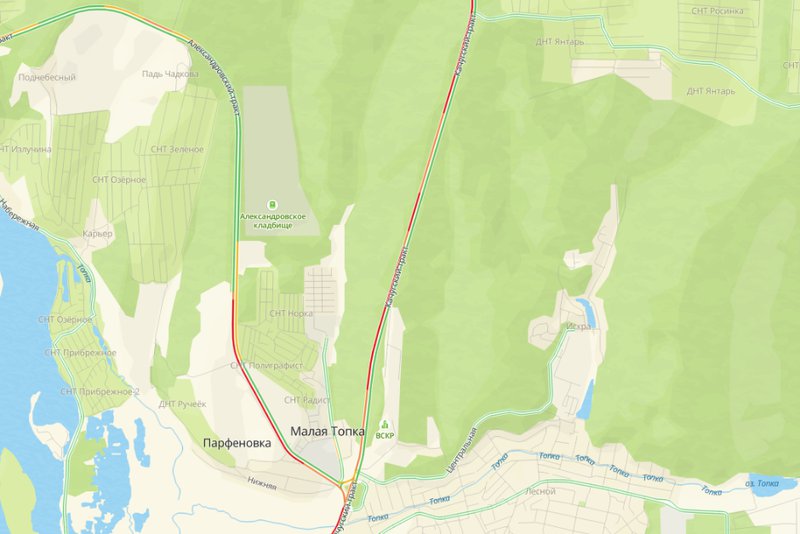 Пробка на Качугском тракте. Скриншот сервиса 2ГИС